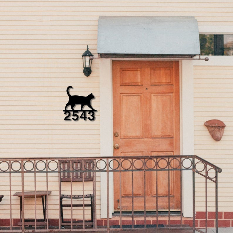 Walking Cat House Number 13 Colors! Personalized Metal Address Number Custom Cat Address Marker House Accent Sign Outdoor Sign | GearViral