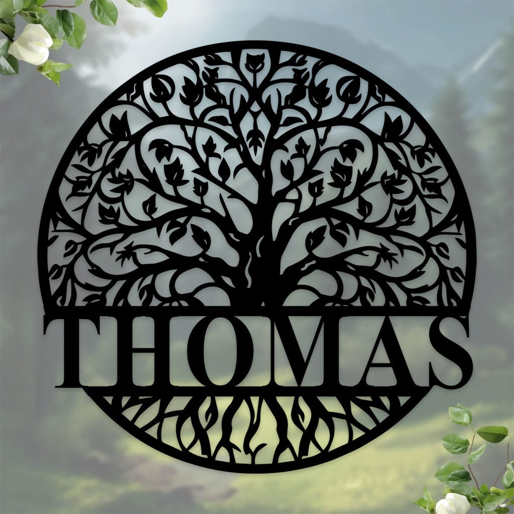 Welcome Family Tree of Life Metal Sign – Personalized Wall Art Decor – Family Name Monogram, Living Room Decor, Housewarming Gift