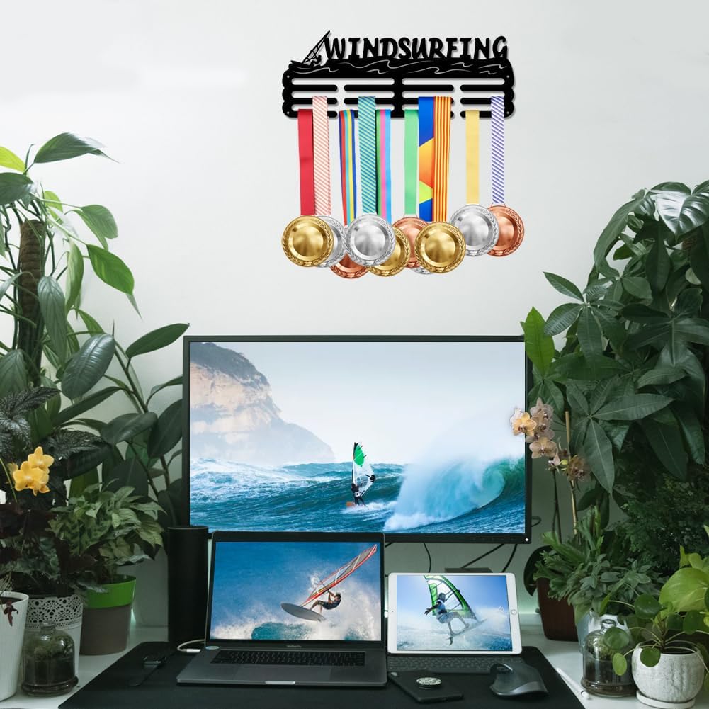 Windsurfing Medal Holder Display Sailing Hanger Rack Frame Water Sports Black Sturdy Steel Metal Wall Mounted Over 60 Medals | GearViral